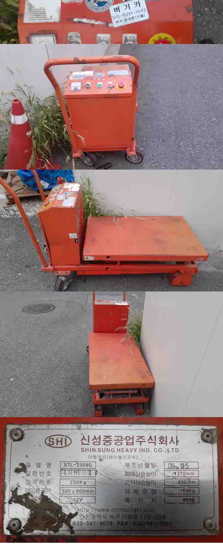 신성 전동유압 테이블리프트 STL-2309D 입니다 동작외관 양호 합니다 DC:12볼트 입니다 현재 밧데리상태 풀양호 합니다 ******제 원******