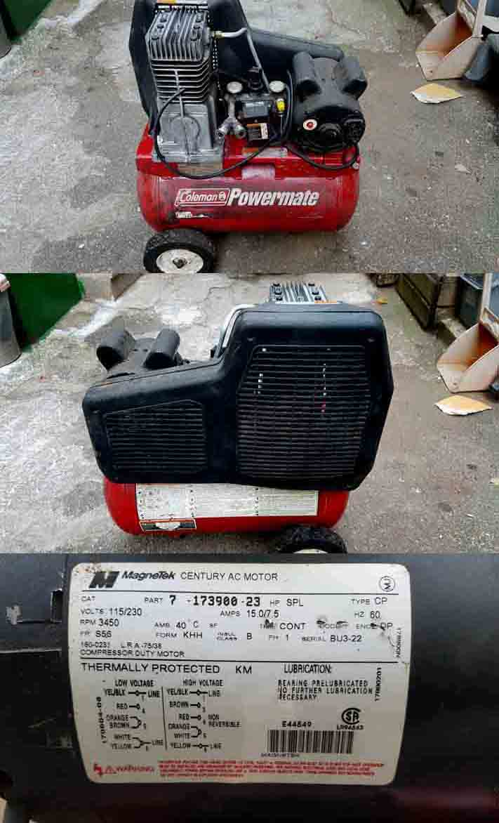 가격인하 U.S.A COLMAN 230V/2.3HP 에어콤프레서입니다 동작 외관 상태 양호 합니다 사진은 실사 입니다 가격:35===25===20만원 화물착불 연락처:010-5251-1533 이기수 기업은행:260-000893-03-012