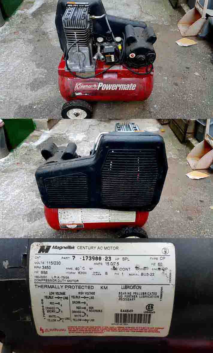 가격인하 U.S.A COLMAN 230V/2.3HP 에어콤프레서입니다 동작 외관 상태 양호 합니다 사진은 실사 입니다 가격:25===20===15만원 화물착불 연락처:010-5251-1533 이기수 기업은행:260-000893-03-012