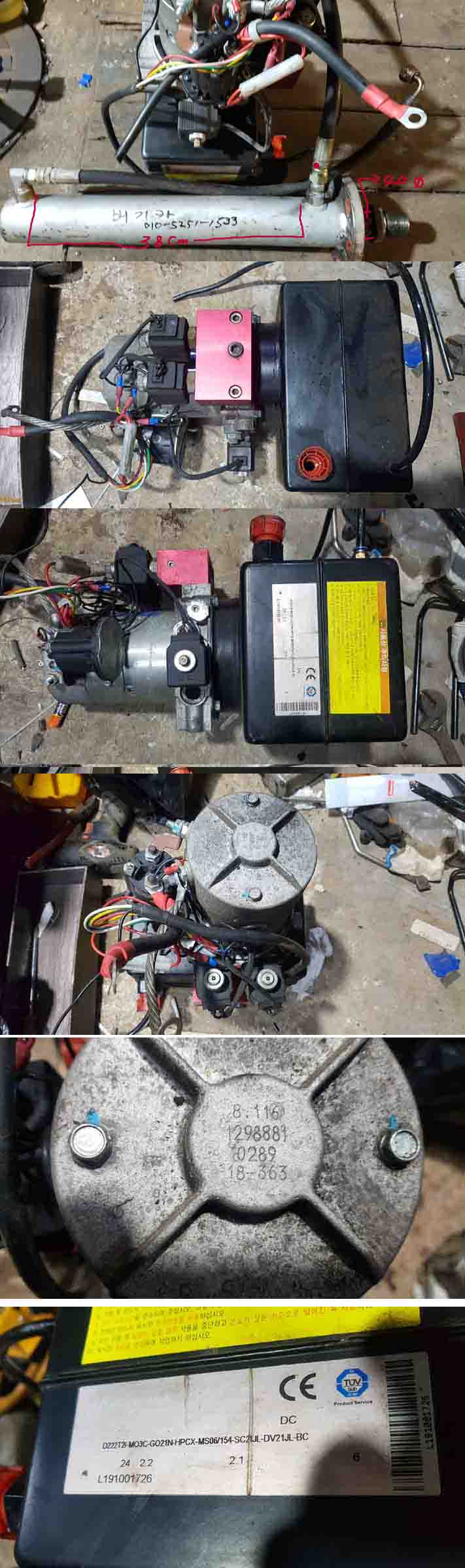 DC 24 VOLT2.2Kw 하이드로 유압펌프 입니다 동작 외관 양호 합니다 실린더스트로크 상-하 0-350mmX롯드40mm 본체에 모든 부속 그대로 장착이되여 있읍니다 복동식 실린다 그대로 사용하시면 됨니다 사진은 실사 입니다