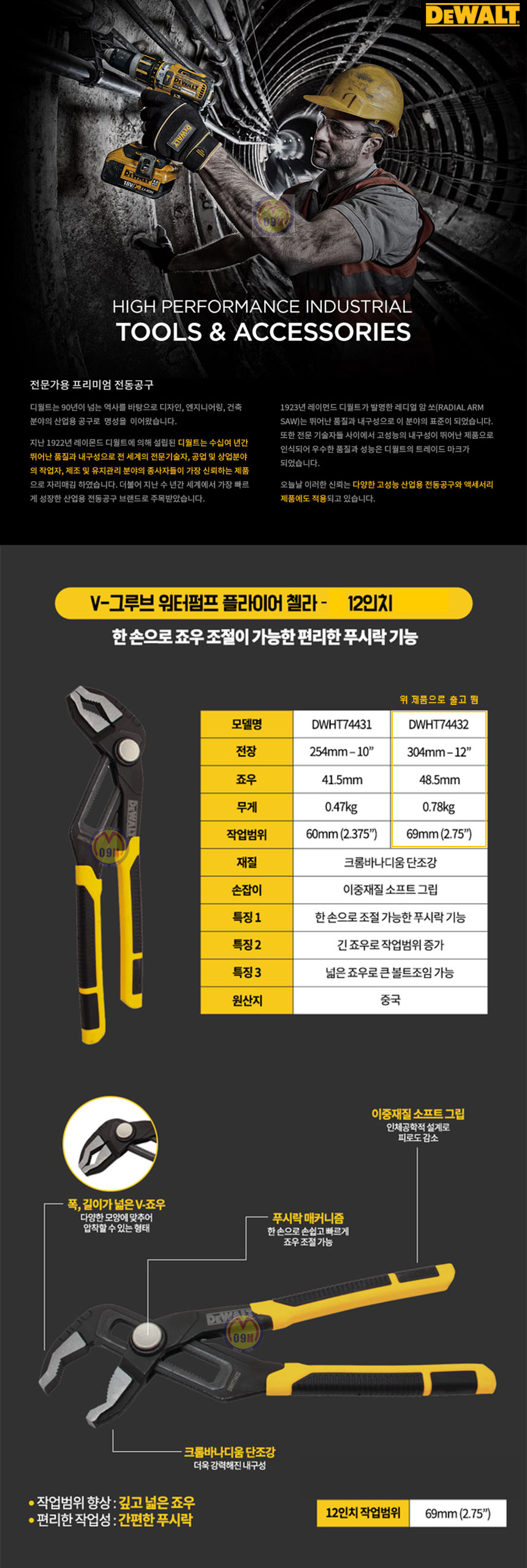 디월트 첼라 DWHT74432 (300MM),그루브 워터펌프 플라이어, 플라이어, DWHT