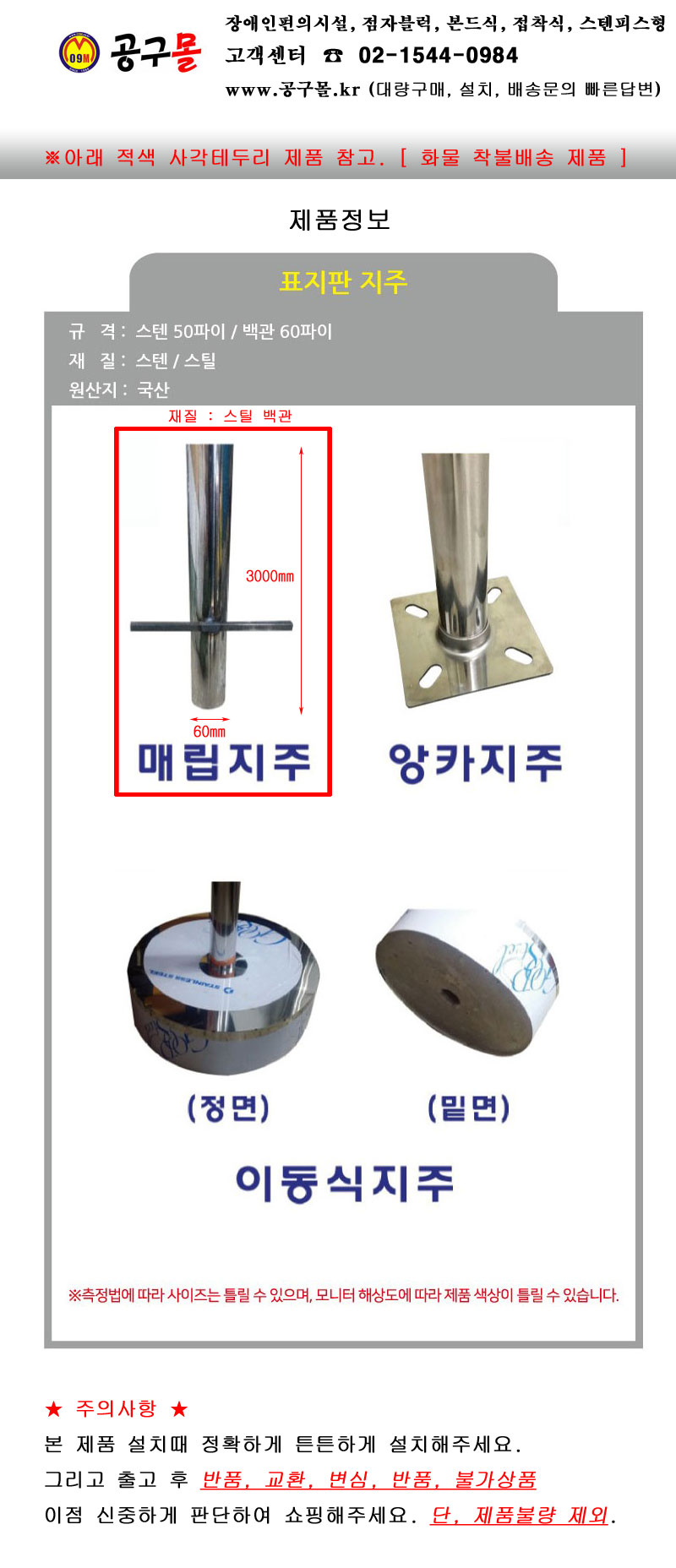 완성 백관매립식 지주(기둥) 60xH3000 완성(39) 주차, 금지, 표지판기둥