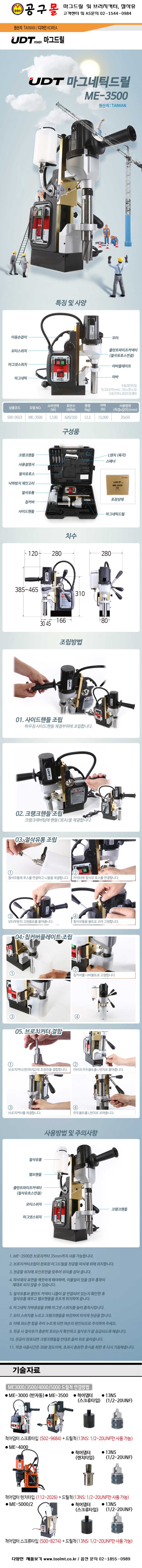 UDT 마그네틱드릴(수동) ME-3500 UDT마그드릴 500-0023