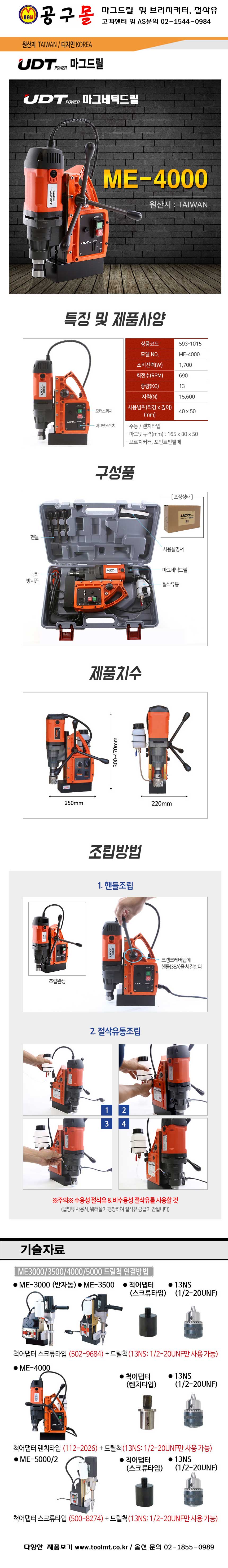UDT 마그네틱드릴(수동) ME-4000 UDT마그드릴 593-1015