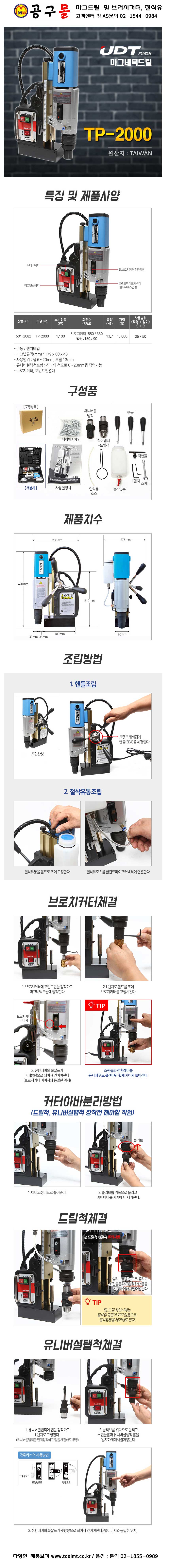UDT 마그네틱드릴(수동) TP-2000 UDT마그드릴 501-2082
