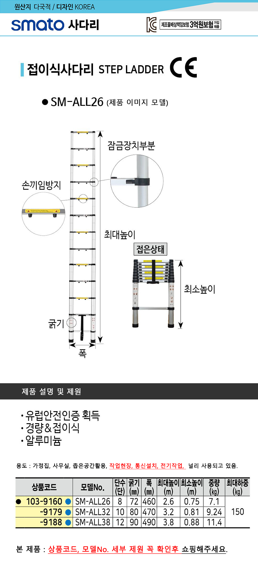 접이식사다리 (알루미늄) SM-ALL26(2.6M) 스마토, SMATO, 공구몰, 103-9160