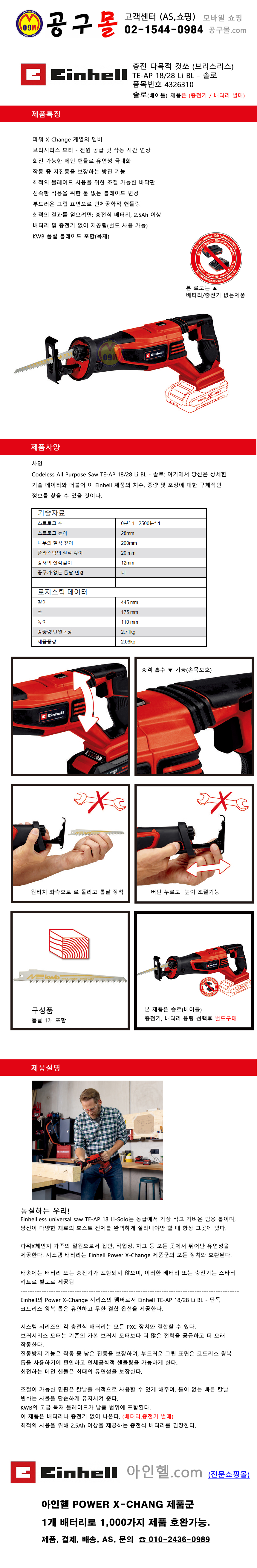 아인헬 충전 다목적 컷쏘 TE-AP 18/28 Li BL, Solo einhell, 공구몰, 4326310