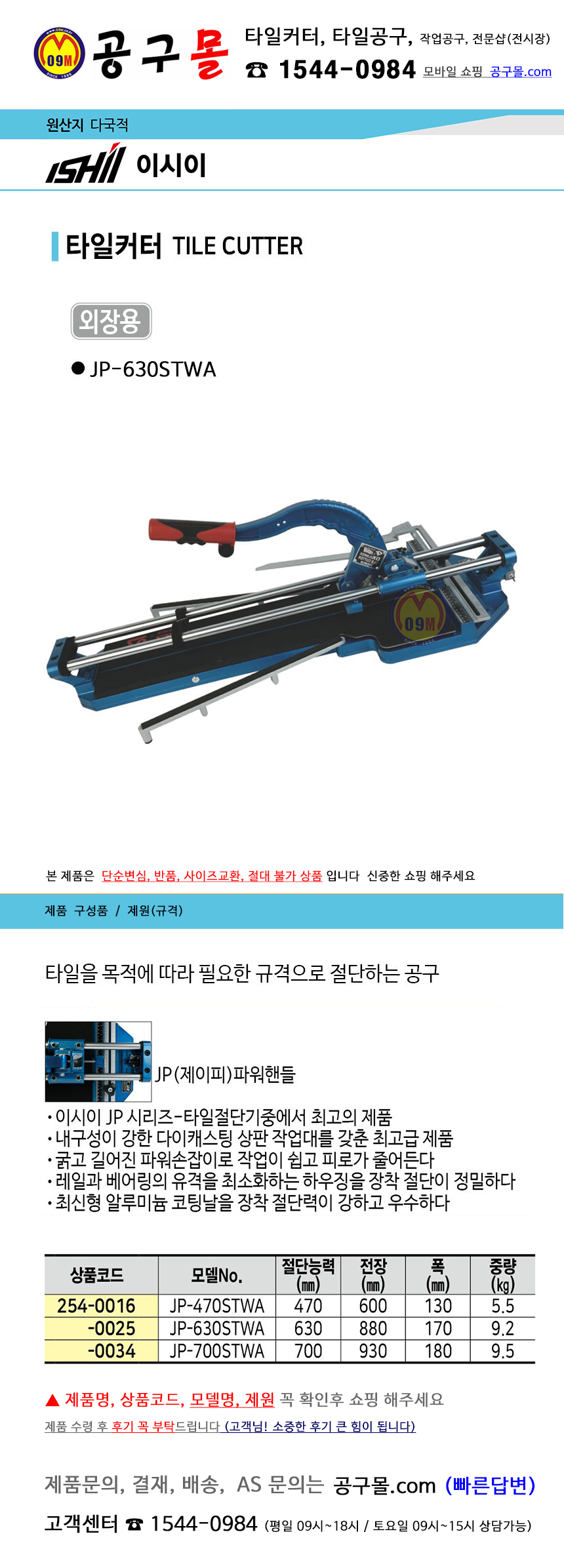 타일커터 JP-630STWA ISHII-이시이/공구몰,타일공구, 타일절단기, 254-0025