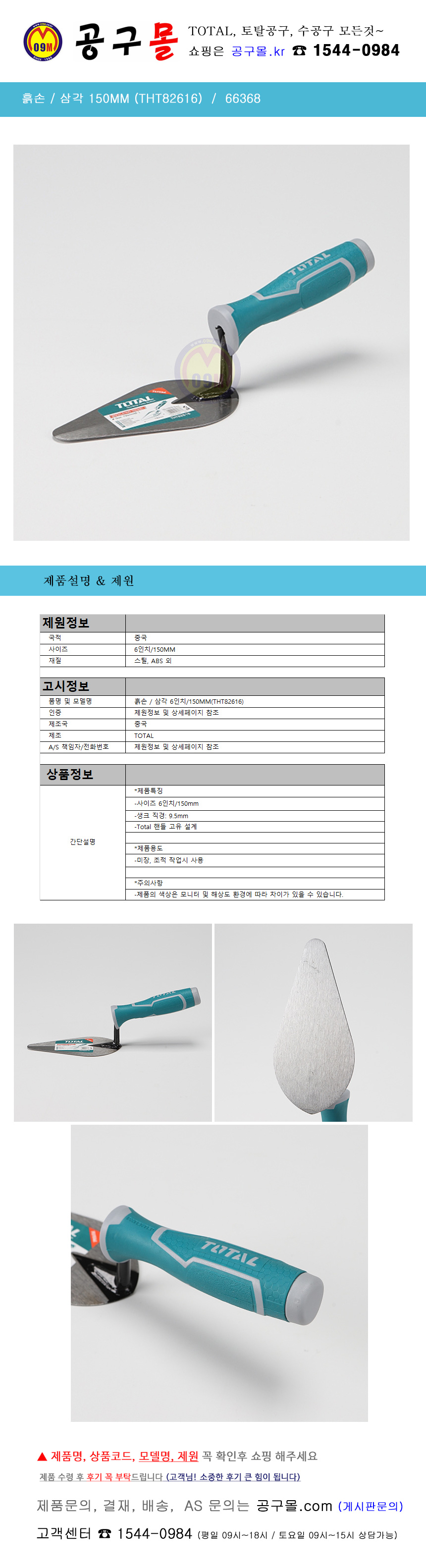 흙손 삼각 150MM (THT82616), TOTAL, 토탈공구, 공구몰, 66368