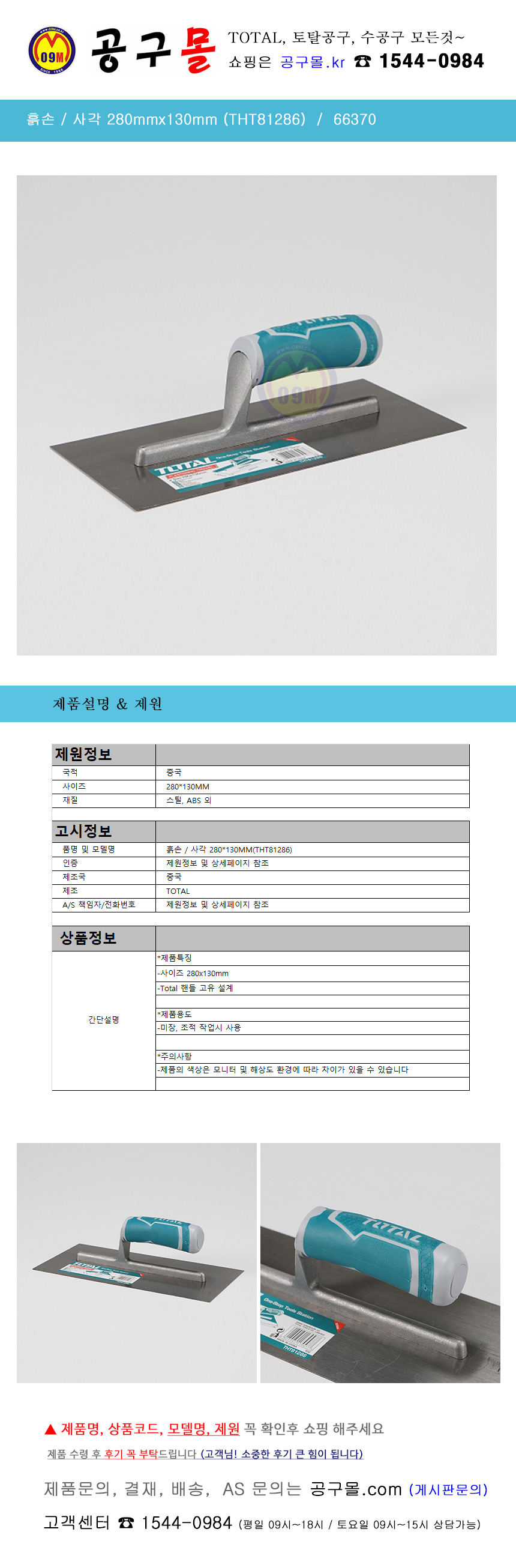 흙손 사각 280mmx130mm (THT81286), TOTAL, 토탈공구, 공구몰, 66370