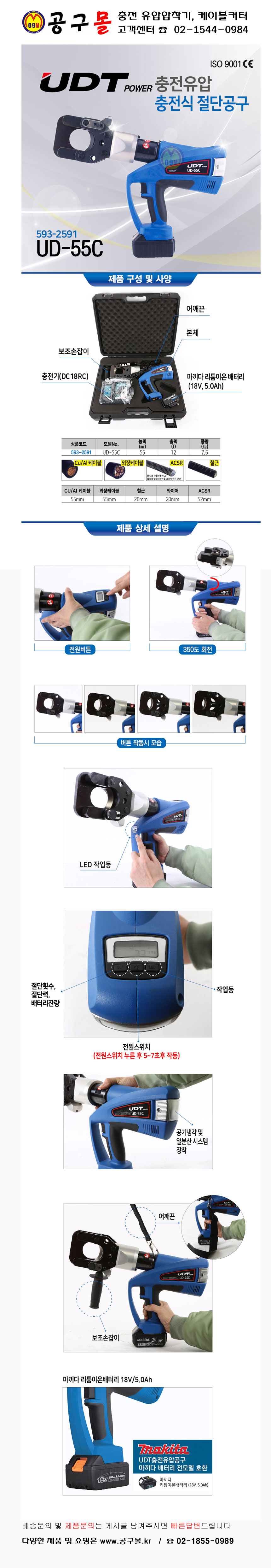UDT 충전식 유압케이블커터 UD-55C(18V1팩) UDT충전유압, UD55C, 5932591, 공구몰,593-2591