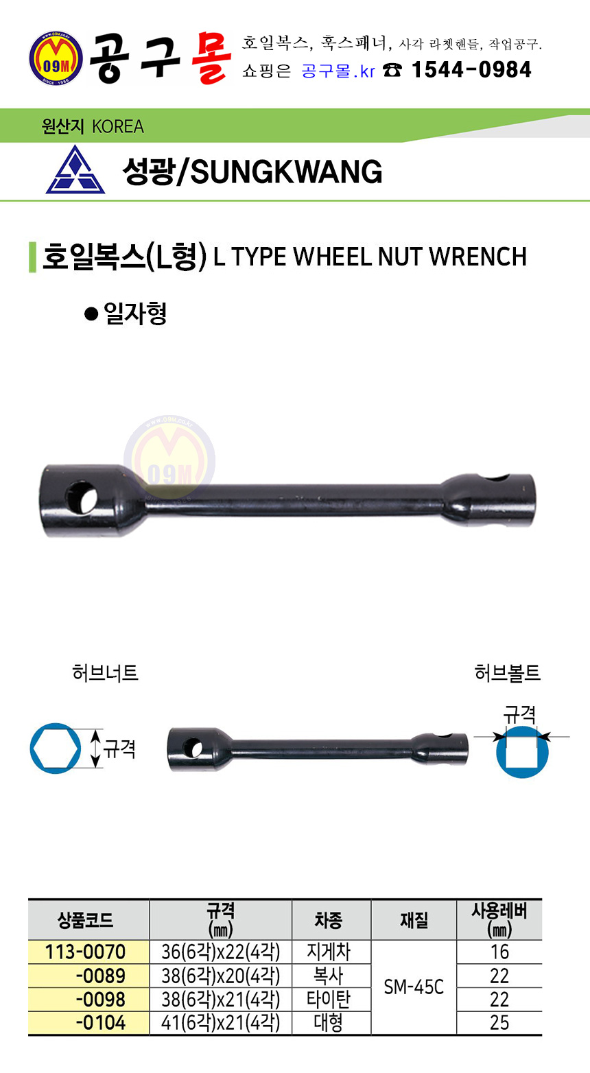 호일복스 19MM(L) 성광금속, 타이어 정비공구, 공구몰, 작업공구, 113-0034