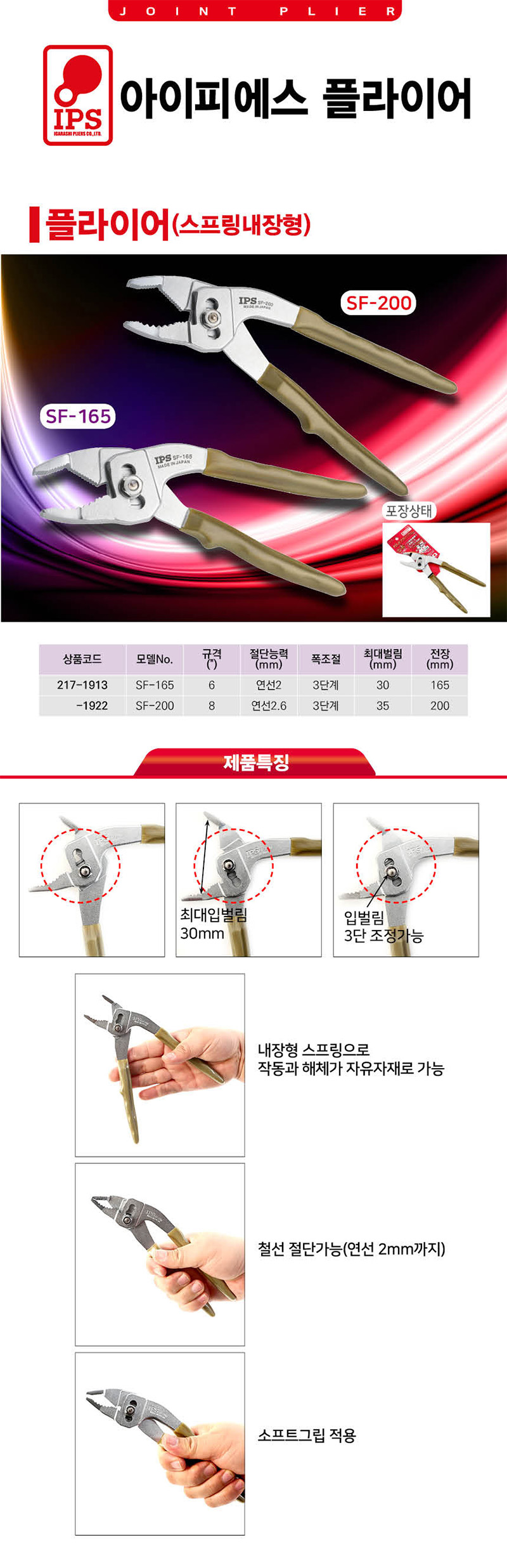 플라이어(스프링) SF-165(150mm) IPS, 아이피에스, 수공구, 작업공구,217-1913