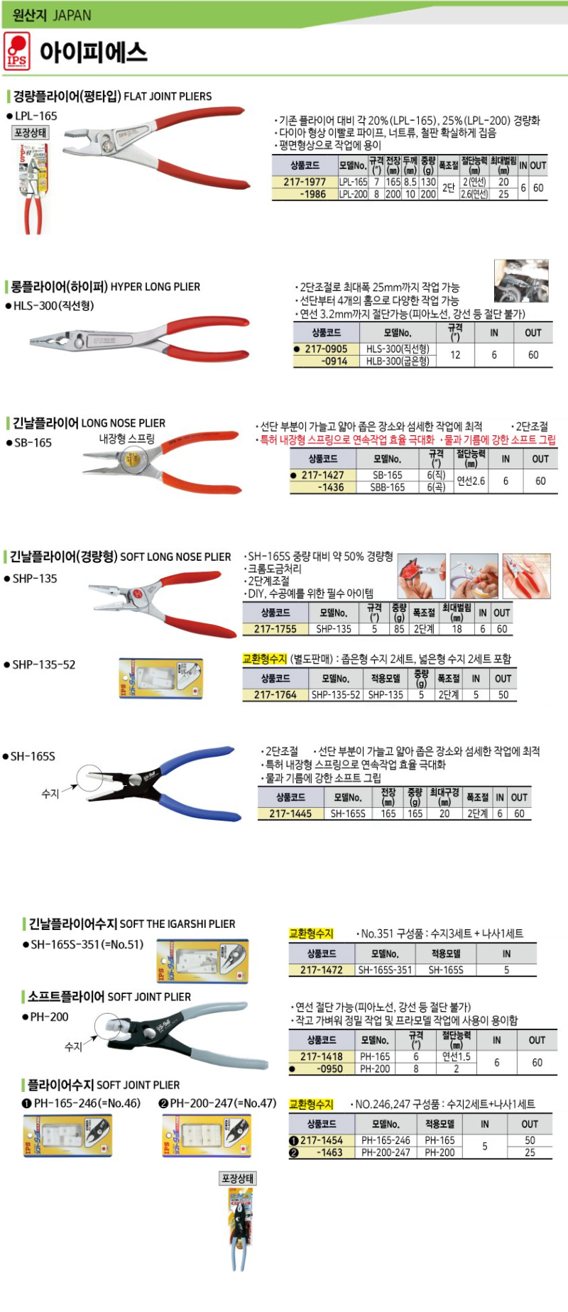교환용플라이어수지 NO.48(=248) WH-250S용 IPS, 아이피에스, 수공구, 작업공구,217-1481