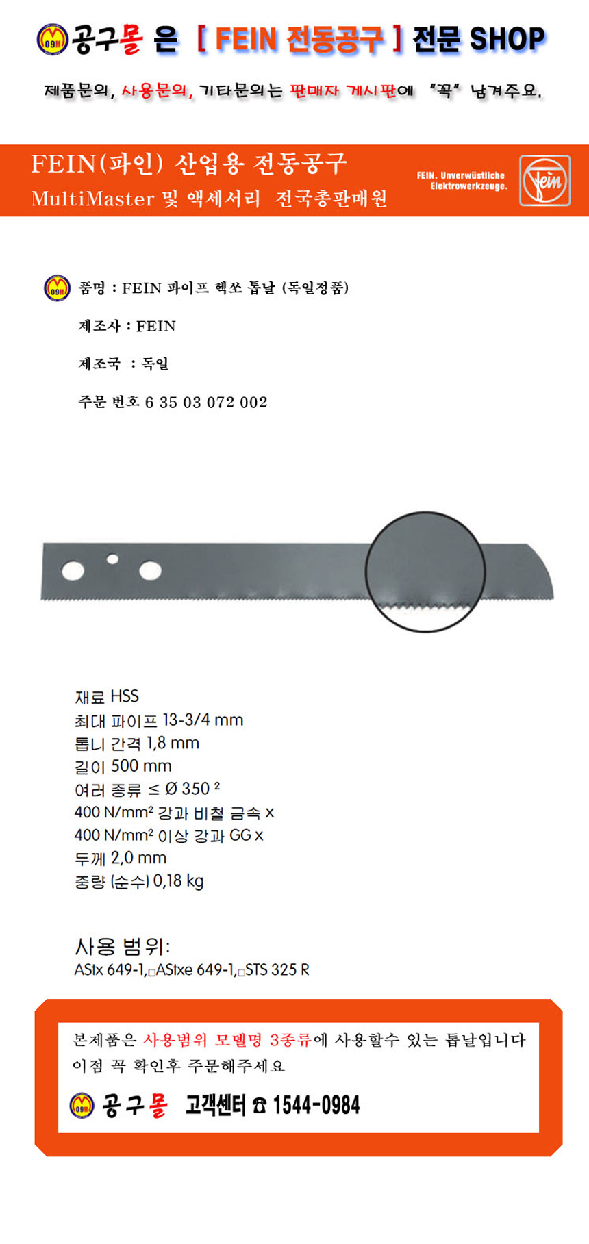 파인 핵쏘톱날 500mm FEIN,파인(AStx649,AStxe64 컷쏘날, 헥쏘날