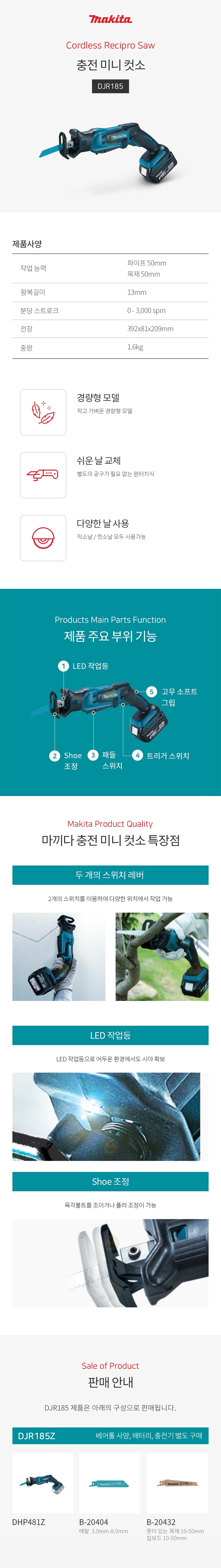 마끼다 18V 충전 미니 컷쏘 DJR185Z (베어툴) 컷소 충전톱 충전컷쏘