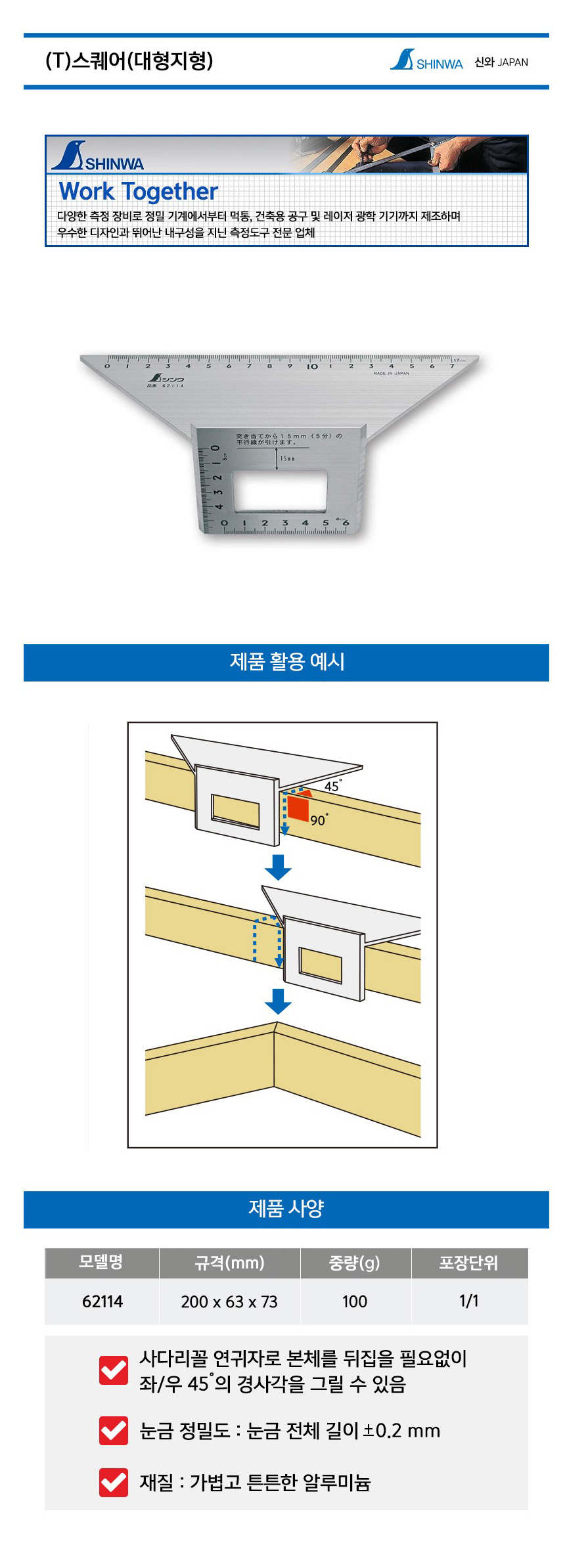 스퀘어(자유자) 62596 SHINWA-신와,직각자,연귀자,,목공구