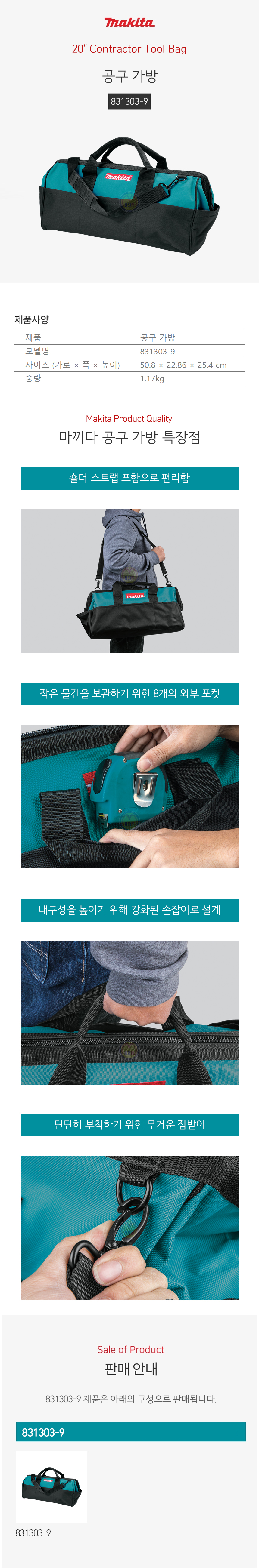 마끼다 공구가방 831303-9 (어깨끈포함) 천가방 툴백