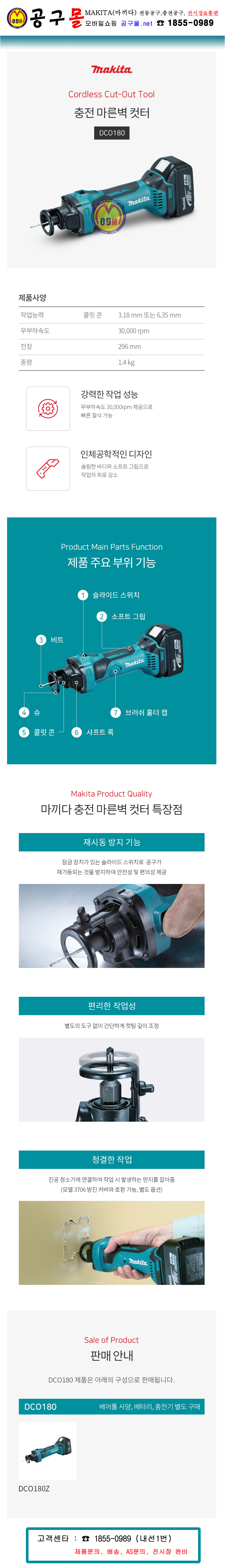 품절,마끼다 18V 마른벽컷터 DCO180Z (베어툴) MAKITA, 공구몰, 합판, 석고보드 스위치 커터작업