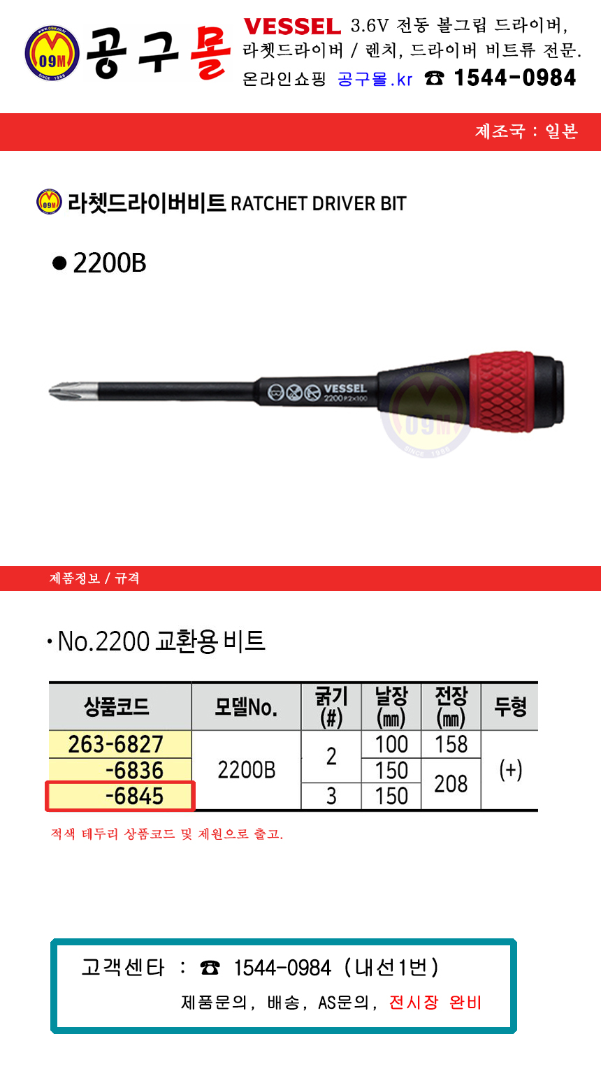 베셀 라쳇드라이버비트 2200x3x150용, VESSEL, 공구몰, 드라이버, 전기공구, 통신공구, 263-6845