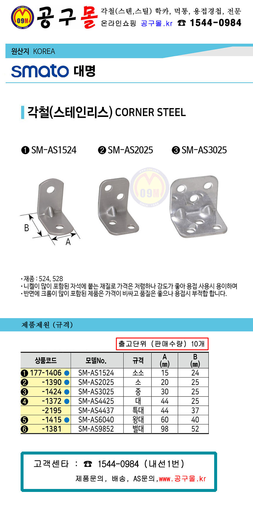 스마토대명 각철(스텐) SM-AS3025(중) 10개 SMATO 대명, 스텐코너, 스텐레스코너, 공구몰, 울산철물점, 177-1424