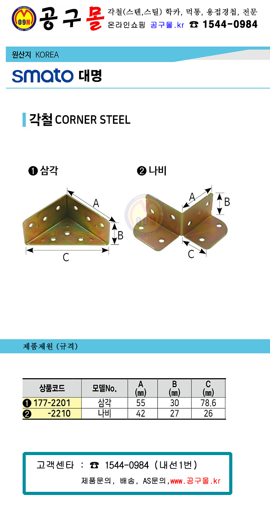 스마토대명 각철 (나비) 10개 SMATO 대명, 스틸코너, 나비코너, 공구몰, 울산철물점,177-2210