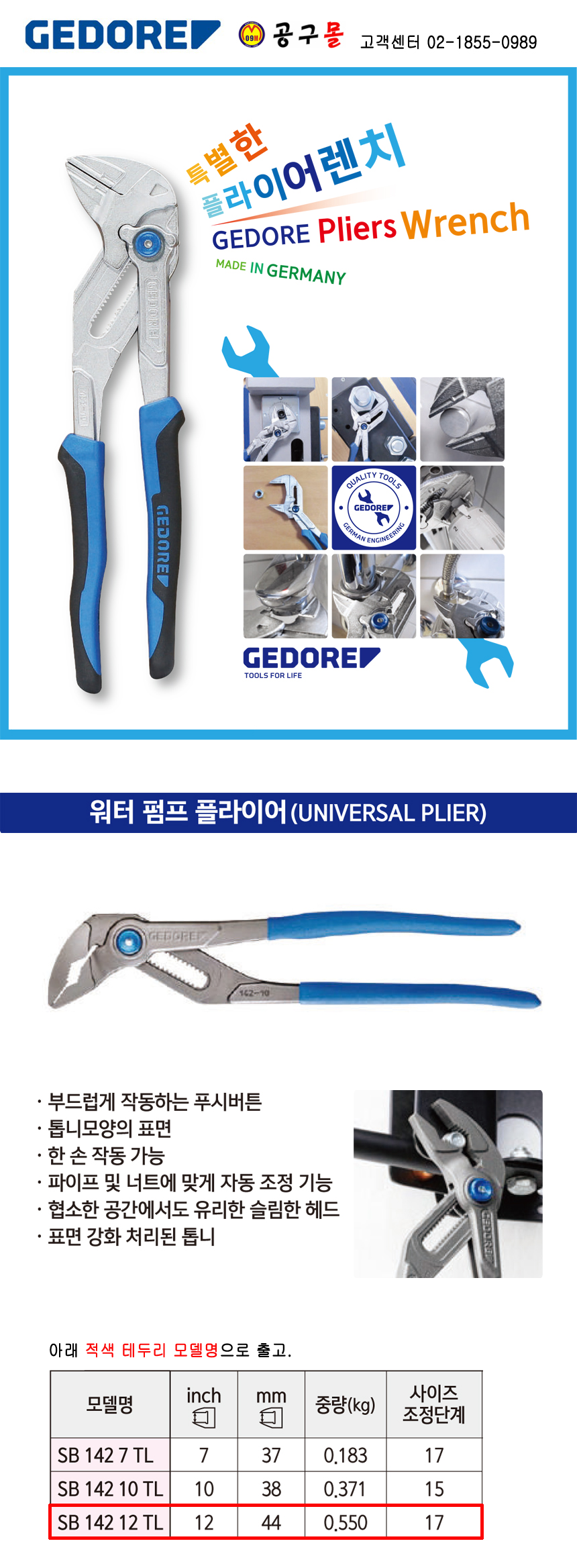 게도레 워터펌프플라이어(첼라) SB14212TL GEDORE, 101001029059