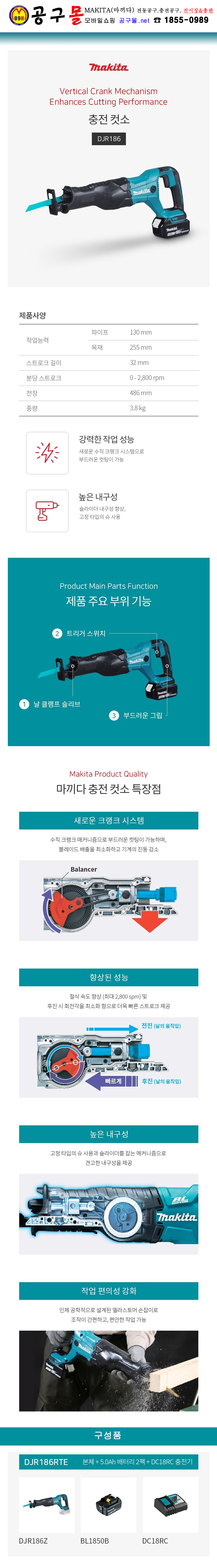 마끼다 18V 무선컷소 DJR186RTE 18V-5Ah(2B) MAKITA, 충전컷쏘, 컷소, 왕복톱, 공구몰,울산대리점