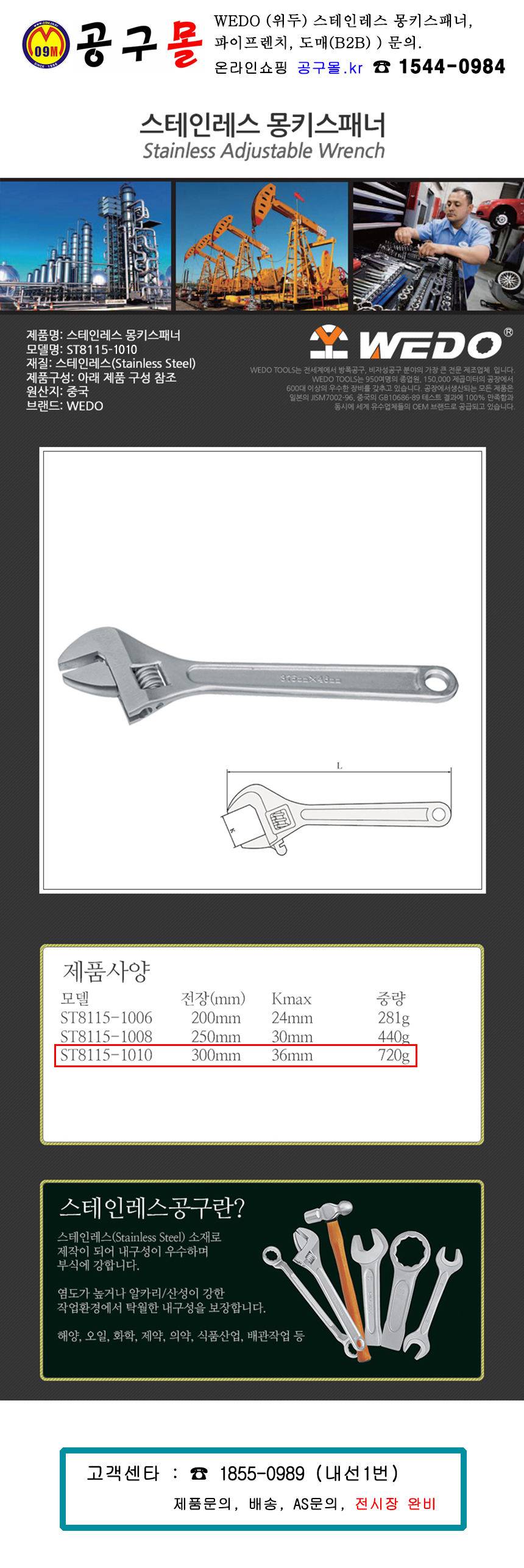 위두 스텐 몽키스패너 300mm (ST8115-1010) WEDO, 공구몰, 800564255140