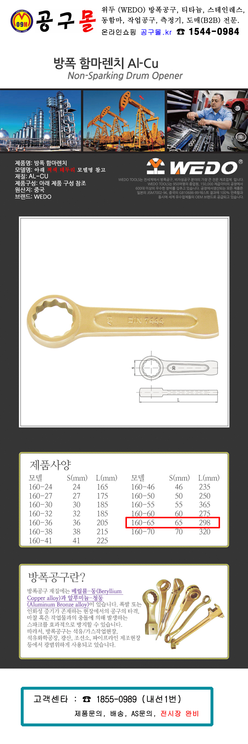 위두 방폭함마렌치(AL-CU) 65mm NS160-65 WEDO, 공구몰, 방폭수공구, 작업공구, 800564142846