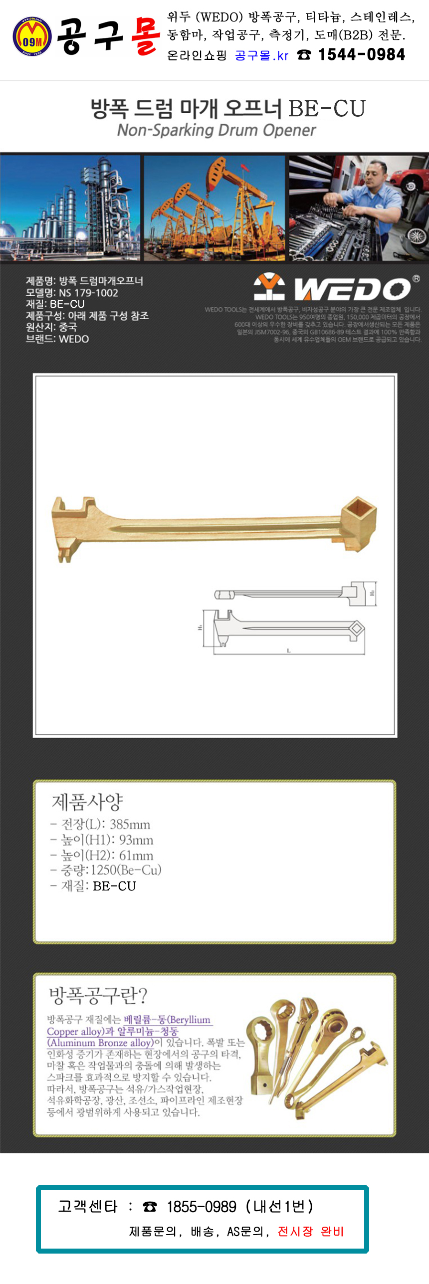위두 방폭드럼마개오프너 BE-CU 385mm (NS179-1002) WEDO, 공구몰, 방폭수공구, 작업공구, 800564254266
