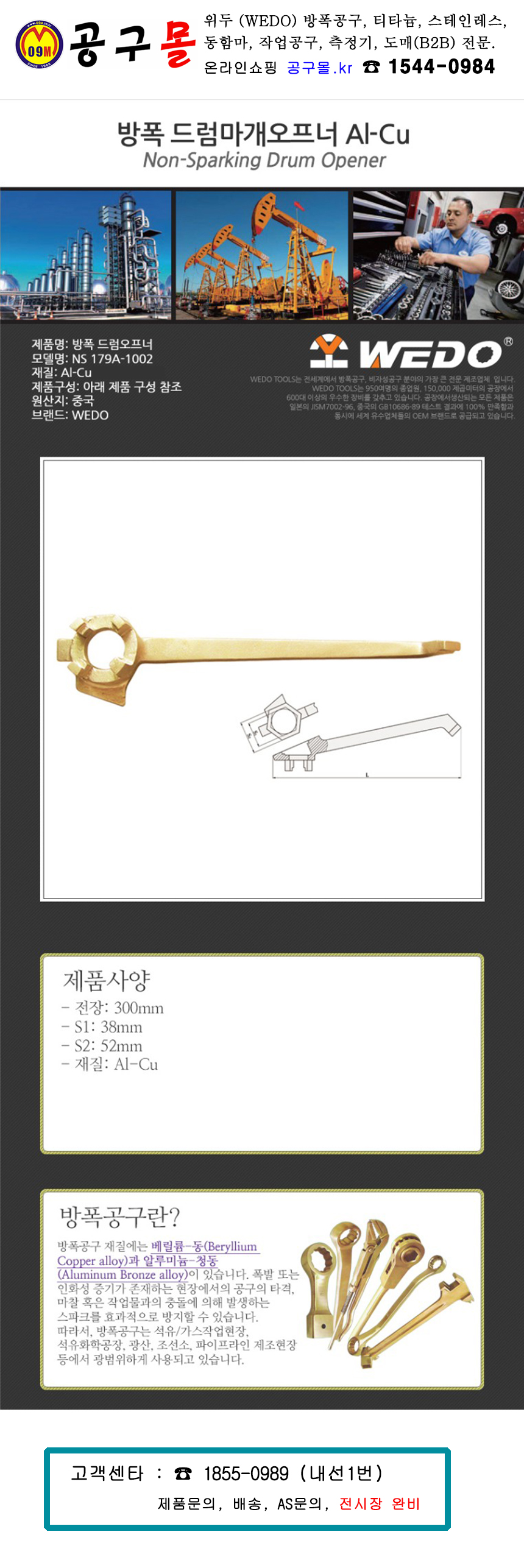 위두 방폭드럼마개오프너 AL-CU 300mm (NS179A-1002) WEDO, 공구몰, 방폭수공구, 작업공구, 800564254259