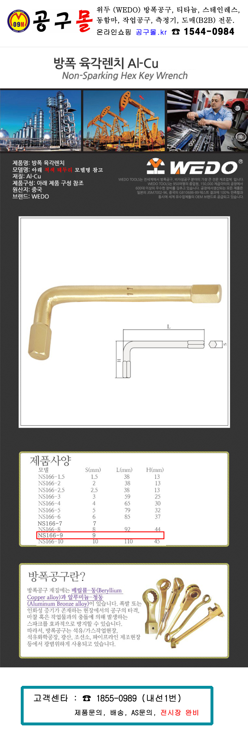 위두 방폭6각렌치(L형) AL-CU 9mm (NS166-9) WEDO, 공구몰, 방폭수공구, 작업공구, 800564254525