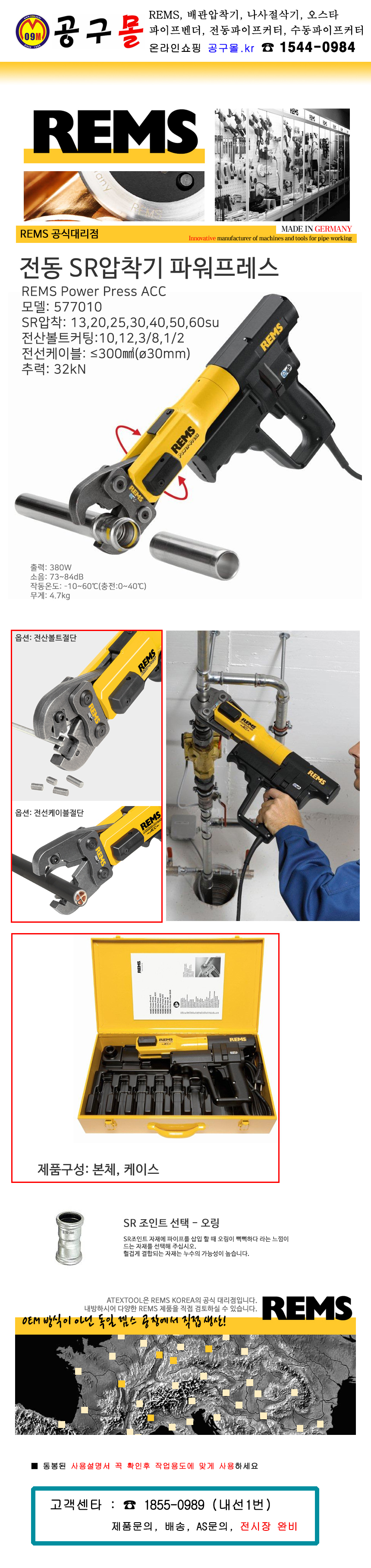 품절,렘스 파워프레스 220V ACC 풀세트 D1 577010 R220, 전동 유압압착기(중형) 13-30수 가위타입/40-60수 링타입, REMS  품절