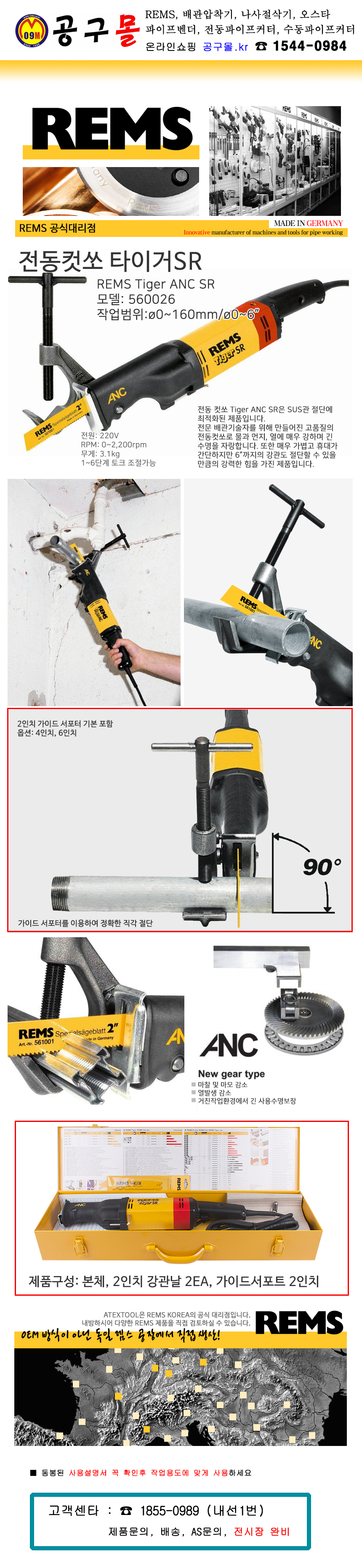 REMS 전동컷쏘 타이거SR 560026 220V(2) 가이드포함) 6inch/250mm 파이프컷터, 파이프커터