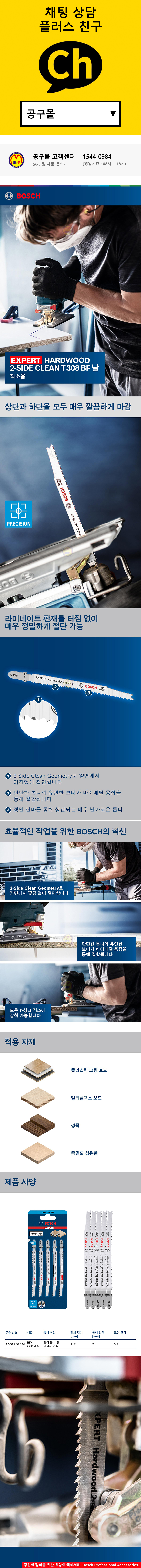 보쉬 EXPERT 직소날 T-308BF (5개 1팩) 목재용 깔끔한절단 하드우드 경목 섬유판 보드용 직쏘날