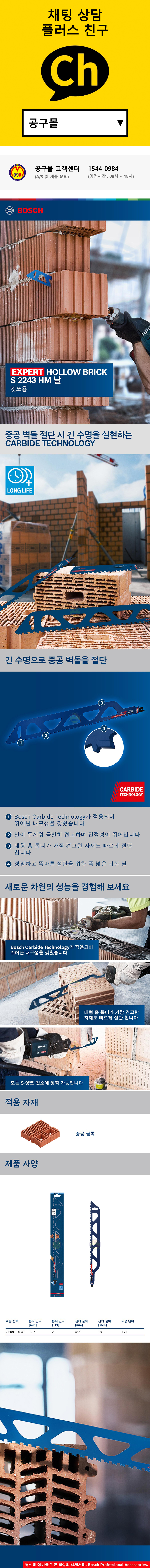 보쉬 EXPERT 컷쏘날 S2243HM (1개 1팩) 벽돌용 중공벽돌용 컷소날 직소날