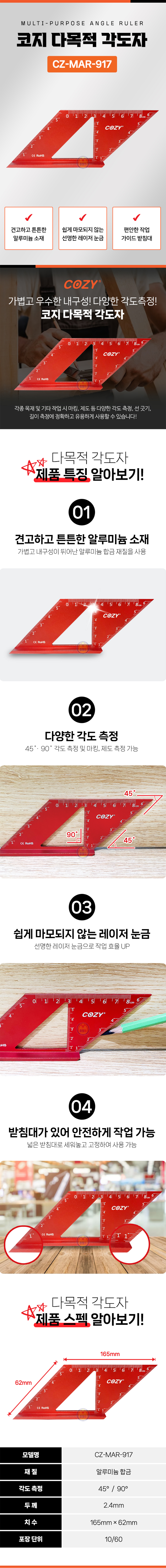코지 다목적각도자 CZ-MAR-917 다용도, 다기능, 제도, 직각자, 공구몰.