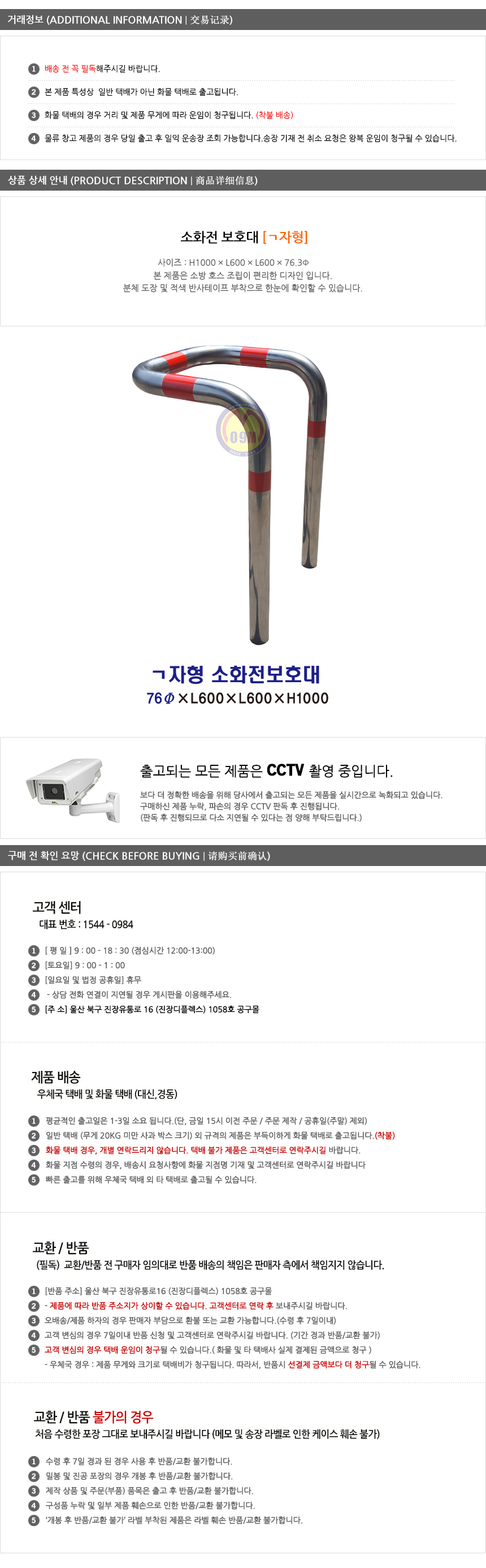완성 스텐 소화전보호대 [ㄱ자형] 안전용품 공구몰닷컴