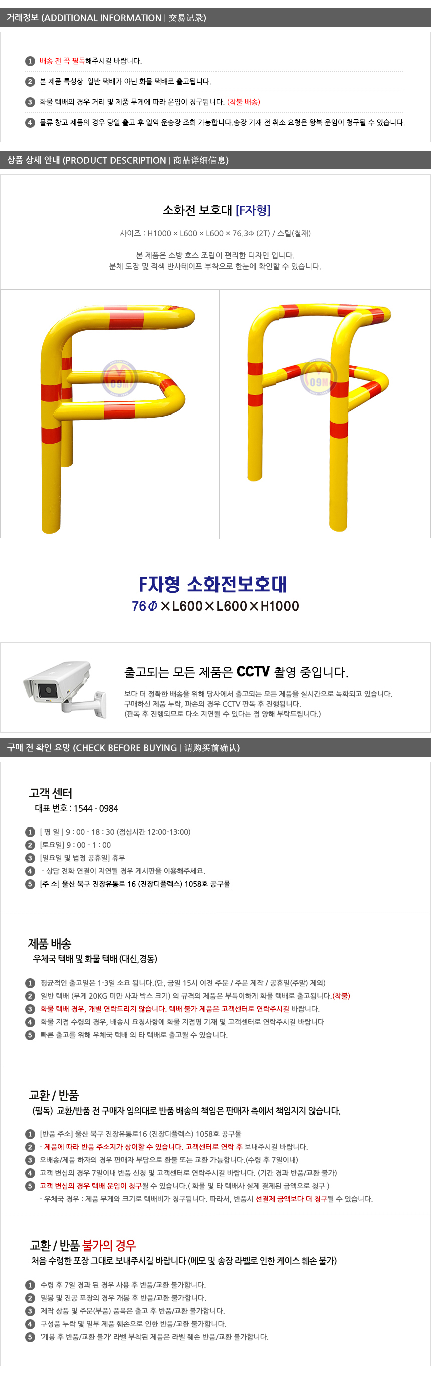 완성 스틸 소화전보호대 [F자형 안전용품 공구몰닷컴