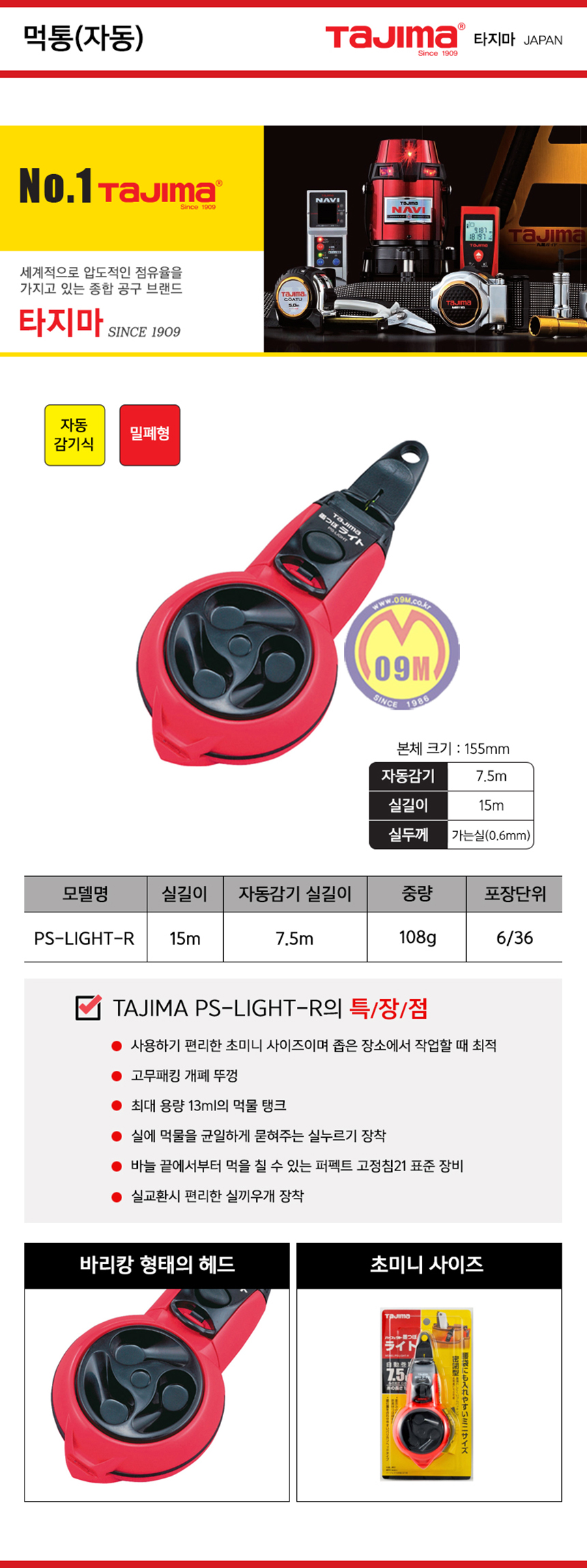 타지마 미니자동먹통 PS-LIGHT-R TAJIMA-목공구,목공공구,111111810061