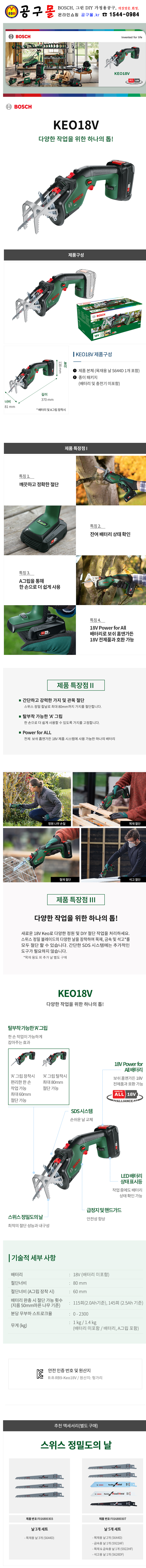 보쉬 18V 충전다목적톱(베어툴) KEO18V 배터리,충전기별매, 0600861AK0,C538-7658