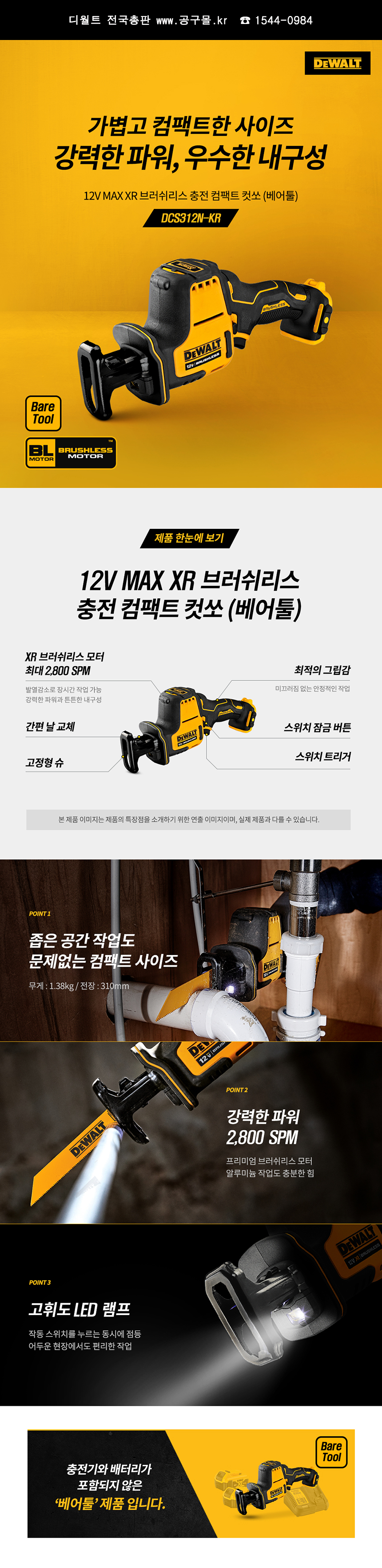 디월트 12V 충전컷쏘(베어툴) DCS312N 충전컷소, 충전톱, 컷쏘, C510-5346