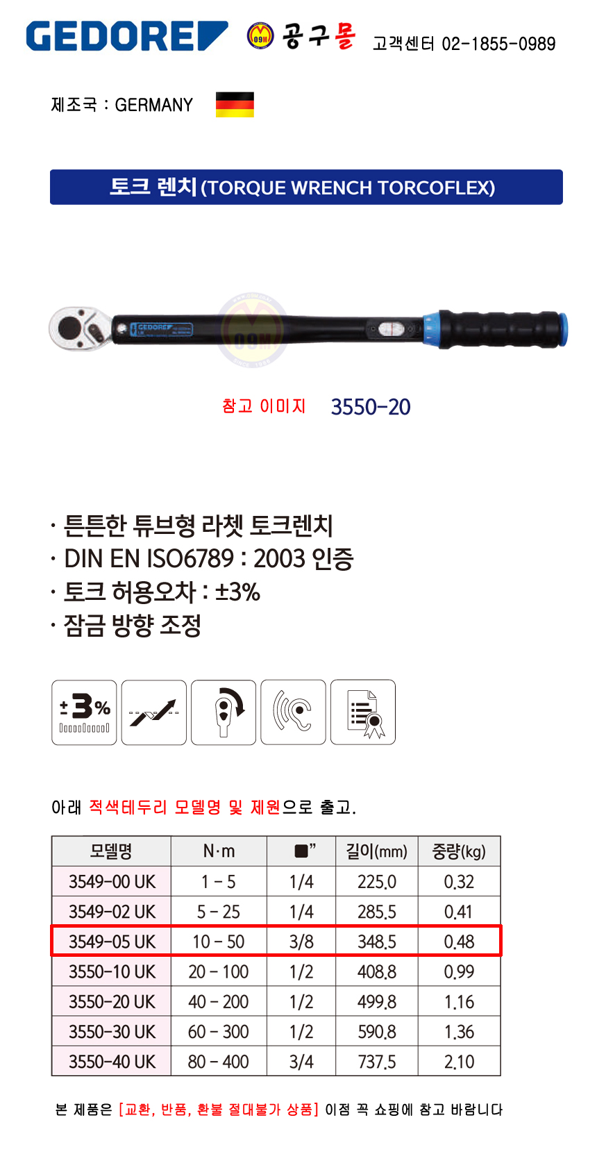 게도레 토크렌치 3549-05UK 3/8 독일 GEDORE 측정공구 141402441638