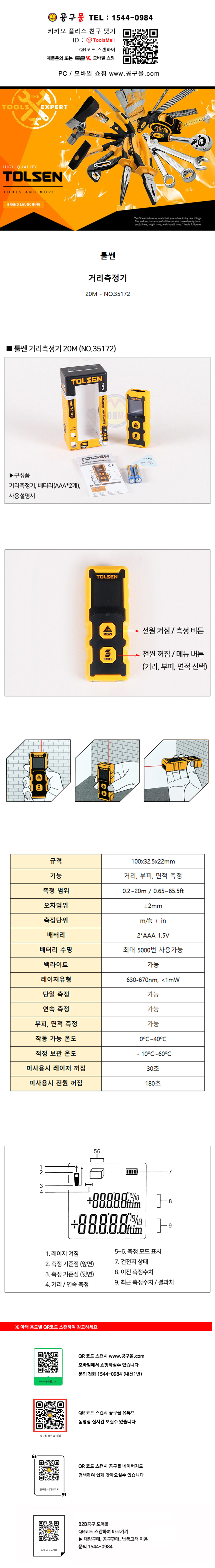 툴쎈 거리측정기 20M NO.35172 레이저거리측정기, 높이측정, TOLSEN 공구몰
