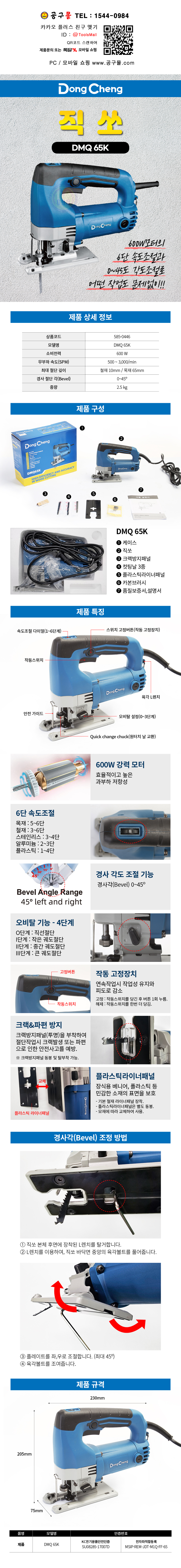 동청 직쏘 DMQ65K / 65mm 600W RPM조절 지그톱, DongCheng 공구몰닷컴 585-0446