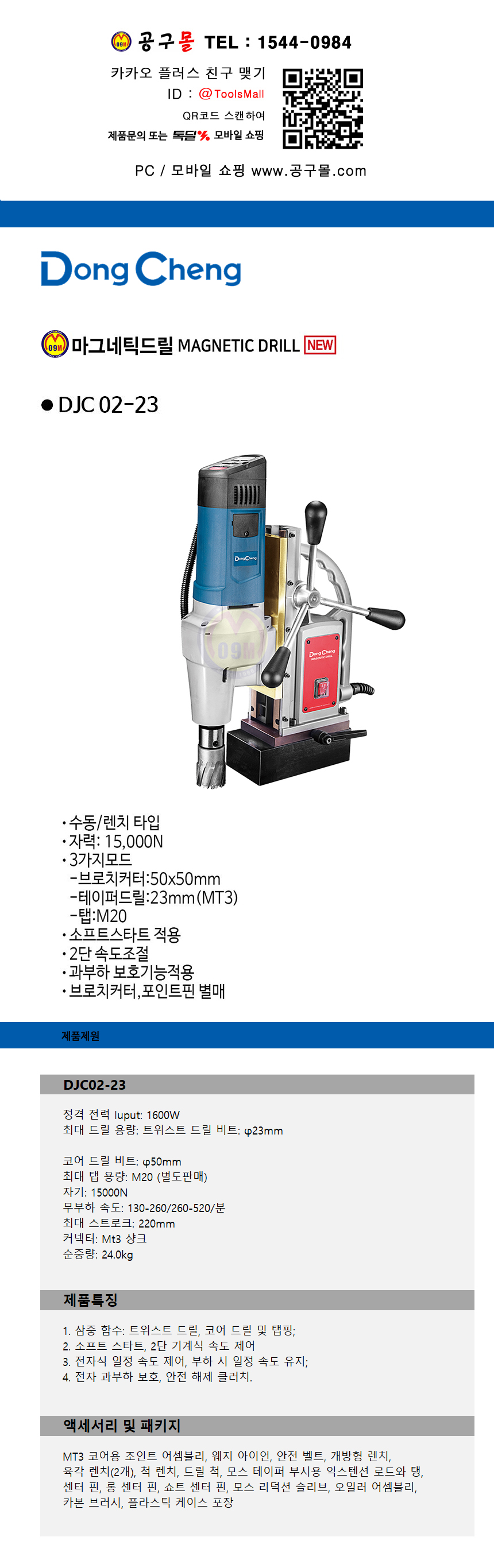 동청 마그네틱드릴 DJC02-23 22mm날포함, DongCheng 공구몰닷컴 585-6097