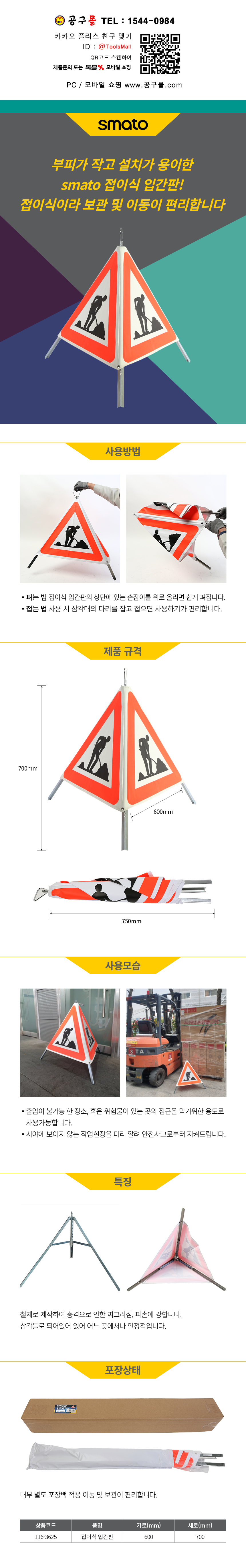 스마토 접이식입간판 (접이식입간판) 750x600mm smato 안전용품 현장작업간판 116-3625