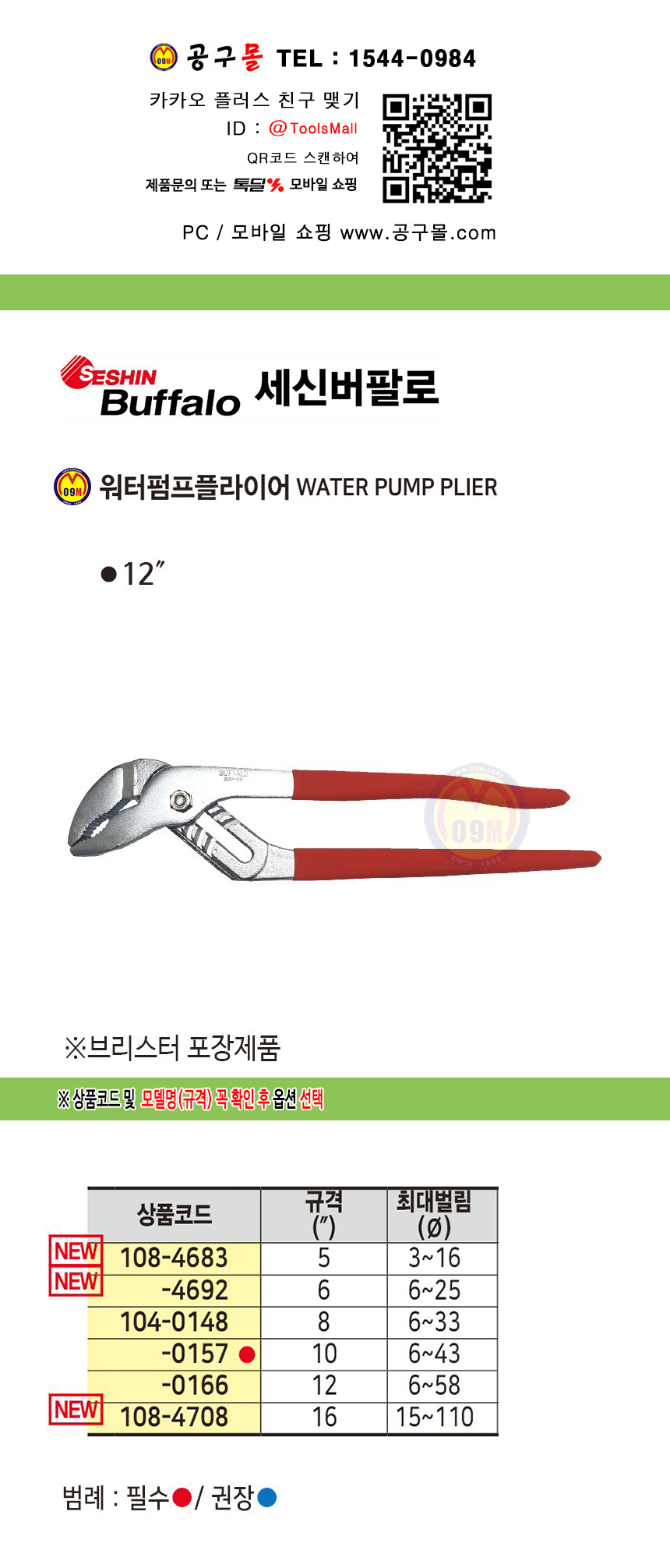 세신 워터펌프플라이어 410mm(16) 첼라, SESHIN 버팔로, 플라이어 공구몰 108-4708