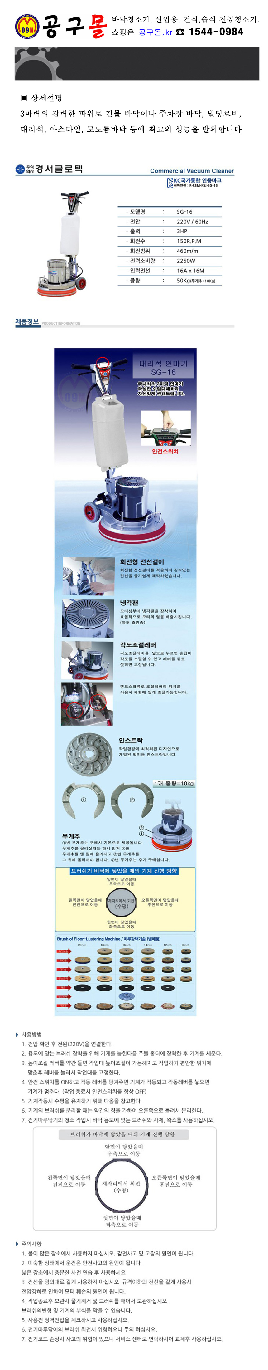 경서 대리석연마기 SG-16, 3HP-220V, 경서글로텍, 바닥연마기, 공구몰, SG16